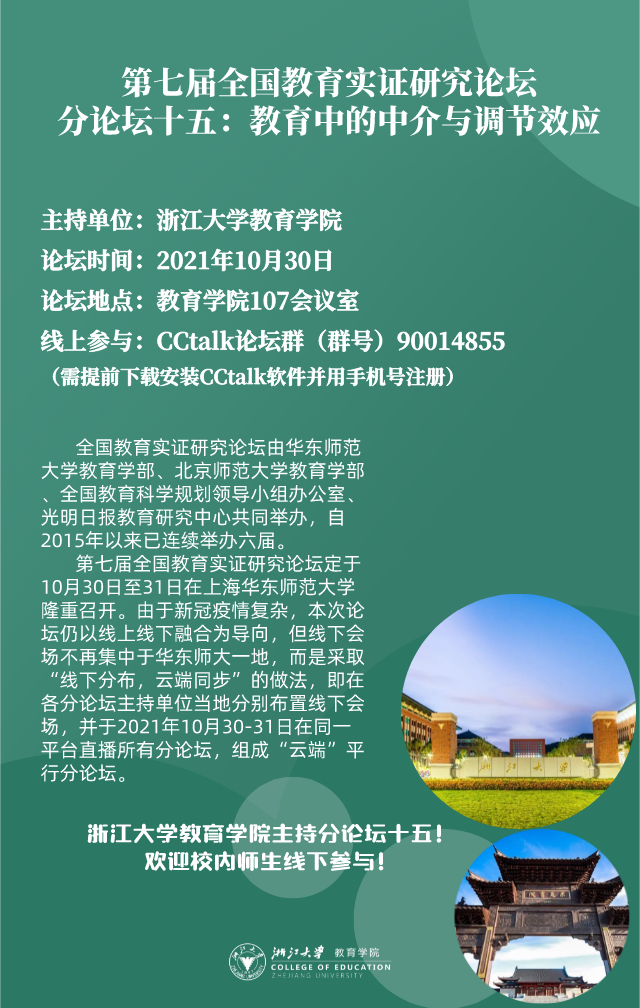 16:00-16:15 | 学术性支持还是情感性支持:导师指导对学术型硕士生学术热情的调节效应分析 邵剑耀(江南大学) |