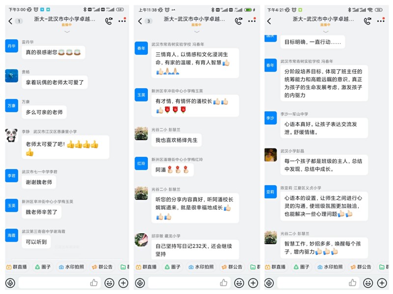 面对国内外新冠疫情的复杂严峻态势,浙江大学教育学院及时调整培训方案,以大规模同步在线培训的形式推进项目实施,有效保障了疫情防控常态化期间继续教育的品质和风险防控。2021年8月和11月,教育学院先后承办“武汉市中职学校班主任能力提高在线培训”和“武汉市中小学卓越班主任2021年在线培训”两个项目,武汉市180名中小学卓越班主任、中职班主任参加了线上项目研修。