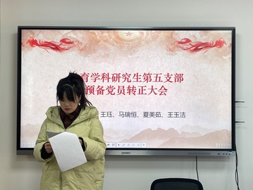 会议伊始,姚超向大家介绍大会各项事宜以及大会流程、宣读本次会议预备党员转正的人员名单,随后,王珏、马瑞恒、夏美茹、王玉洁4位转正预备党员相继宣读转正申请书,汇报预备期中自己在思想、生活、工作等各方面的情况,由党员对预备党员提出意见,评议其是否具备接收为党员的条件。经过投票表决,4位预备党员均全票通过党员决议,成为中共正式党员。