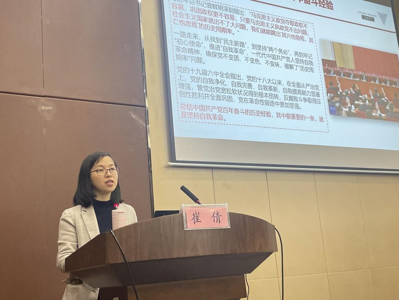 为深入学习贯彻党的十九届六中全会精神,崔倩老师带来了“悟百年奋斗历程,展青年之未来担当”的主题党课分享,与全体党员及入党积极分子共同学习《中共中央关于党的百年奋斗重大成就和历史经验的决议》。