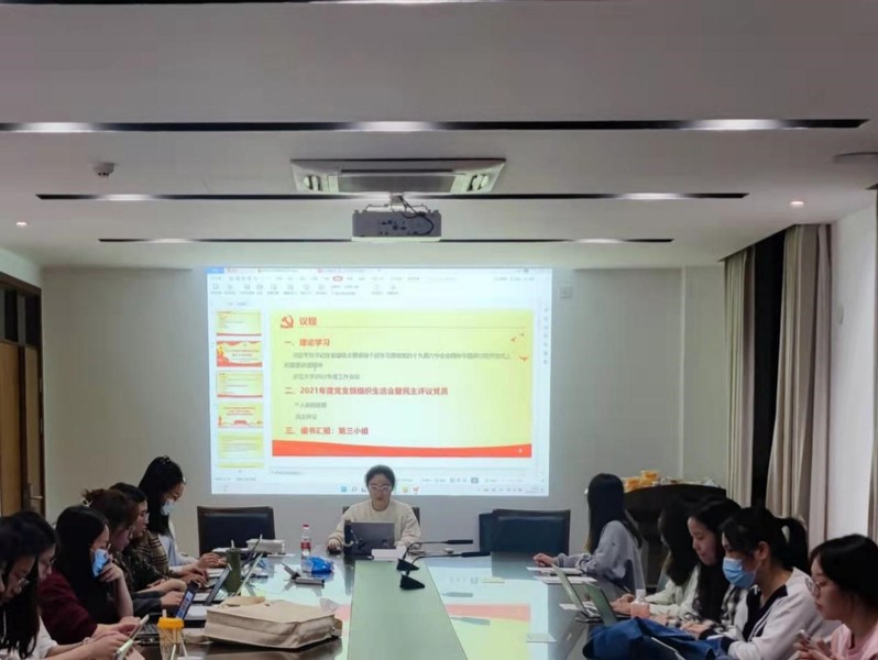 首先,支部书记陈璐结合《党的十九届六中全会<决议>学习辅导百问》对习近平总书记在省部级主要领导干部学习贯彻十九届六中全会精神专题研讨班开班仪式上的重要讲话精神进行了学习和分享。紧接着,陈璐解读了浙江大学2022年度工作会议内容,主要围绕任少波书记《历史使命引领一流大学发展——在浙江大学2022年度工作会议上的讲话》、吴朝晖校长《扩大十四五开局优势,增强高质量发展动能,为加快迈进世界一流大学前列扎实推进2022年工作——在浙江大学2022年度工作会议上的讲话》两个文件展开介绍。随后,她以“创优争先,继往开来”为主题进行了支部2021年度的工作总结。从教育党员、管理党员、监督党员和对于组织师生、宣传师生、凝聚师生、服务师生两个大的层面对支部工作进行了总结与反思、自查与展望。不断总结反思和加强规划,号召支部全体党员继续完善深化长效机制,为建设着力落实、富有特色、充满活力的党支部而努力!