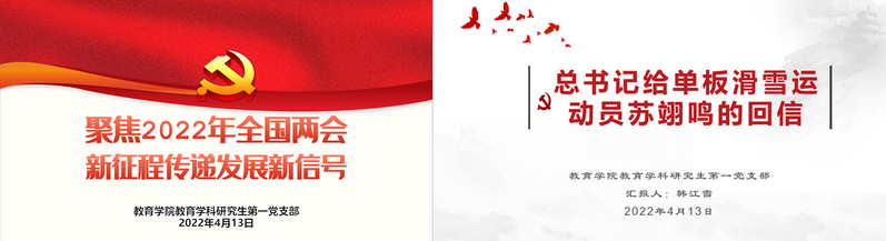 4月13日下午,教育学科研究生第一党支部召开支部大会开展党支部换届选举工作,并围绕2022年全国“两会”、总书记给苏翊鸣的回信以及“疫情防控,党支部在行动”等主题进行党课学习。会议由支部书记苏洁主持,支部全体党员和入党积极分子参会。