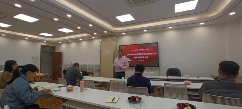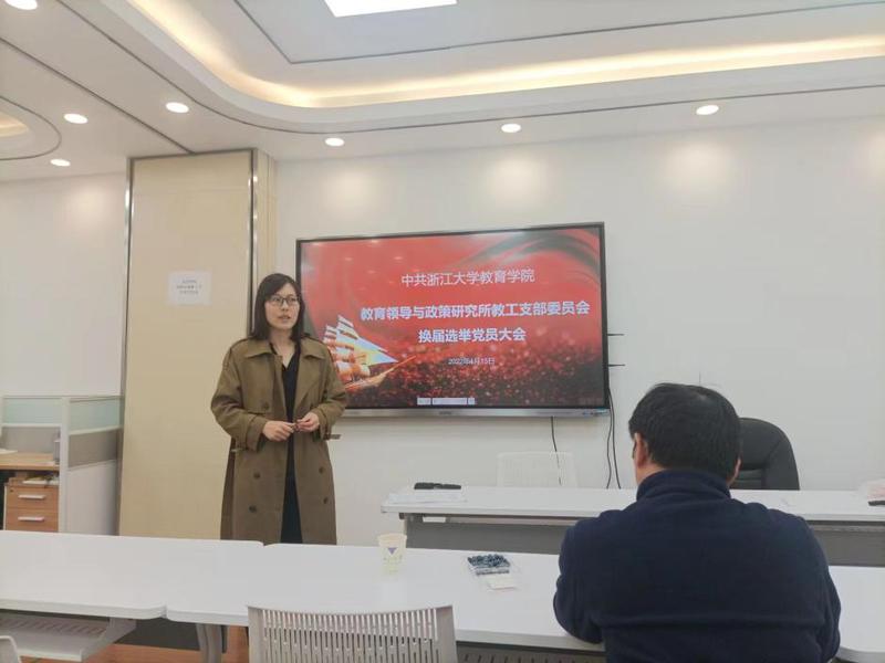 2022年4月28日下午,教育领导与政策研究所教工党支部在教育学院508会议室召开支部换届选举大会,并开展疫情防控主题党日活动。会议由支部书记张佳老师主持。