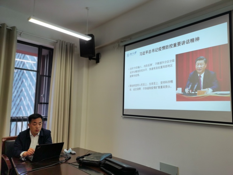 随后,王树涛同志主持了主题党日学习。他带领全体党员认真学习了习近平总书记关于疫情防控工作的重要指示精神和伟大抗疫精神。大家重点围绕习近平总书记的相关重要讲话精神开展讨论和交流,并一致表示面对当前国内外疫情防控的复杂形势,必须始终坚持“人民至上、生命至上”的原则,为各项建设事业的有序推进提供坚强保障。最后,支部党员集体学习了教育部办公厅印发的《学校教职员工疫情防控期间行为指引(试行)》。大家一致认为要严格遵守学校的疫情防控规定,坚持“健康第一”,全身心抗疫;同时,大家还纷纷表示将发挥党员先锋模范作用,积极参与疫情防控服务工作。