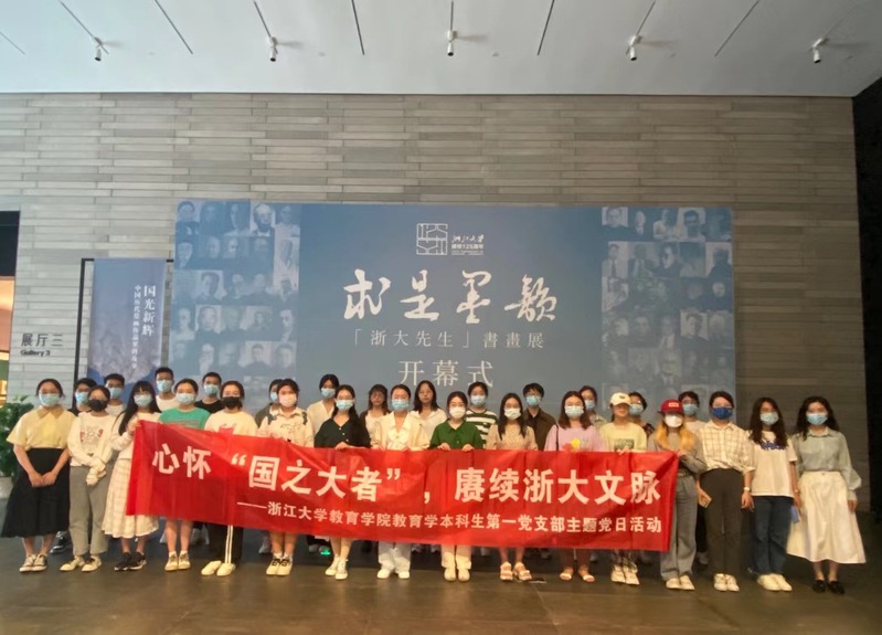近日来,学校有关部门结合125周年校庆,举办了系列主题展览,引导师生员工心怀“国之大者”,坚定理想信念,增强文化自信,强化使命引领,涵养爱校情怀,进一步凝聚砥砺前行的奋进力量。基于此,教育学本科生第一党支部拟定参观求是墨韵——“浙大先生”书画展作为本月主题党日活动。