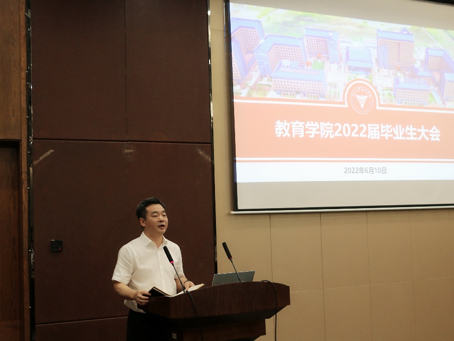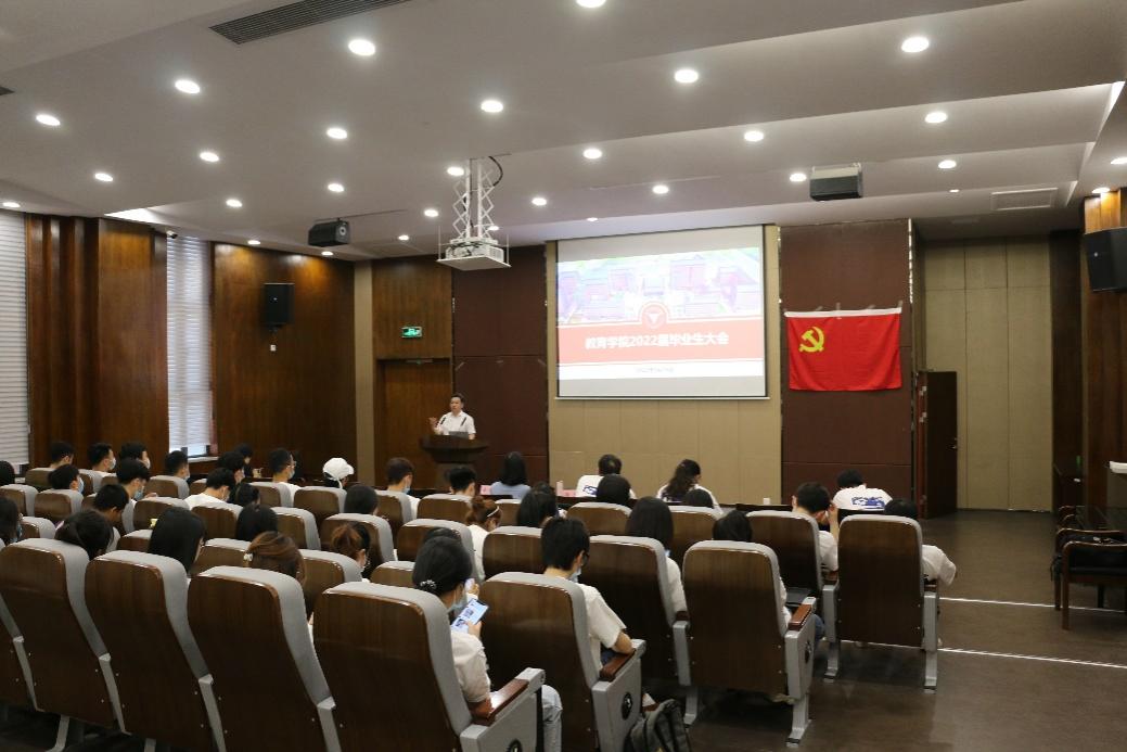 2022年6月10日上午,浙江大学教育学院2022届毕业生大会在教育学院新大楼118报告厅举行。教育学院党委书记兼副院长吴巨慧老师、党委副书记兼纪委书记崔倩老师、团委书记张静波、研究生教育办公室苏洁、本科教育办公室赵津婷、组织人事办公室巫微涟、团委吴春霆六位老师及2022届本硕博学生参加大会。