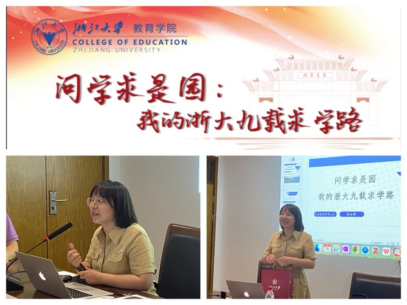 6月16日,教育学科研究生第二党支部、教育学科研究生第四党支部、教育学本科生第一党支部、教育学本科生第二党支部在教育学院222室联合召开毕业生经验分享会。2017级比较教育学专业直博生徐冰娜以“问学求是园:我的浙大九载求学路”为主题,应邀分享自己在浙大求学的九年中,尤其是读博期间的学习、科研以及就业求职的心路历程及经验。本次活动由教育学科研究生第二党支部书记王慧敏老师主持,四个支部的近50余名党员同志参会。