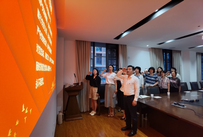 “七一”将至,支部为11名上半年入党的同志举办了庄严而又温馨的集体“政治生日会”。崔倩为大家颁发了政治生日贺卡,吴巨慧带领支部全体党员重温了入党誓词。铮铮誓言激励着机关全体党员教工铭记立德树人初心,牢记为党育人、为国育才使命,为浙江全面推进“两个先行”、为学校加快迈向世界一流大学前列贡献智慧和力量。