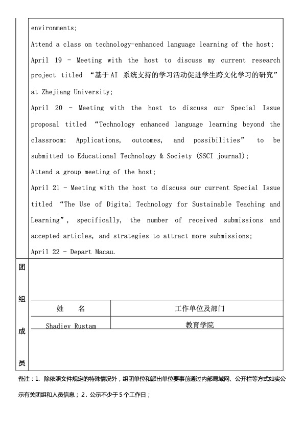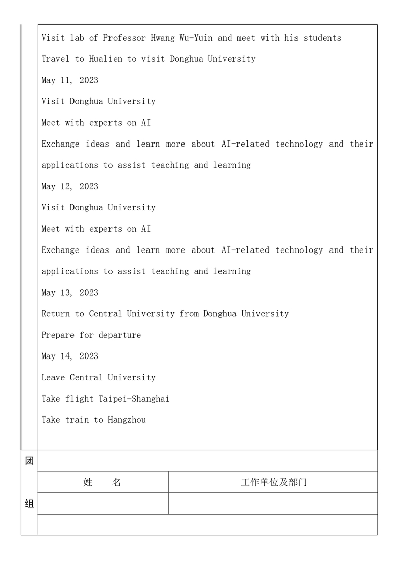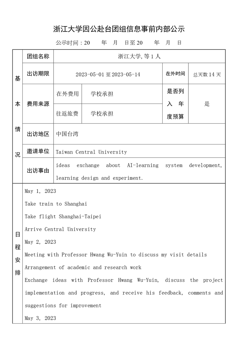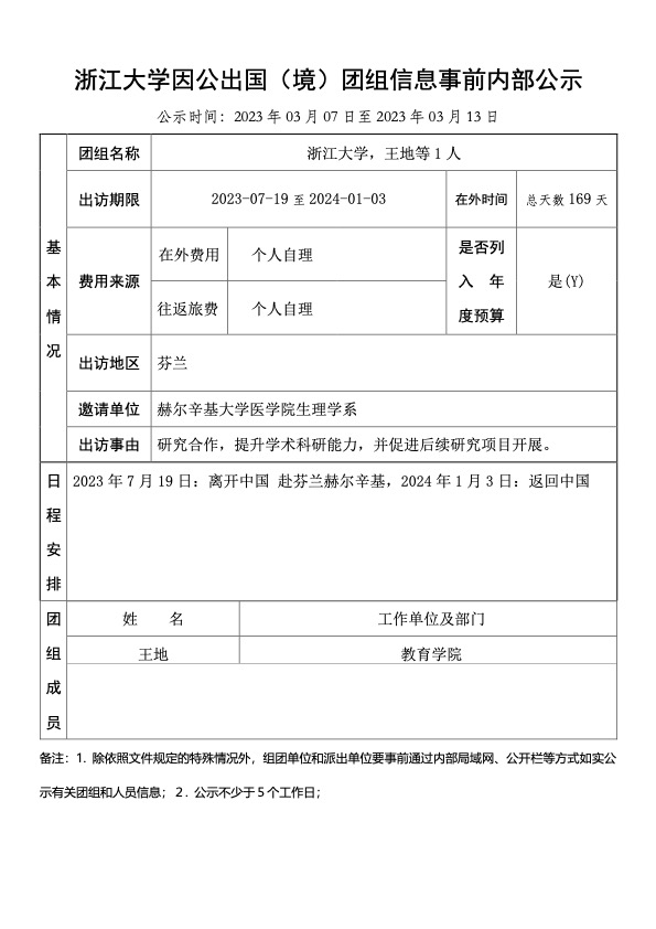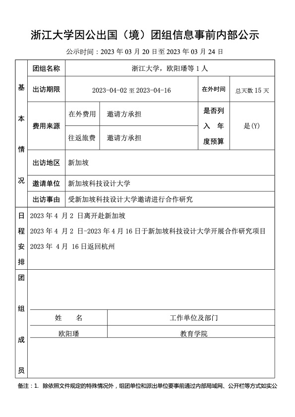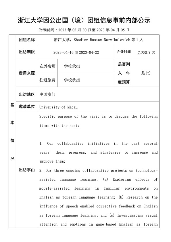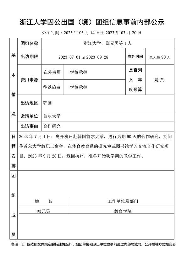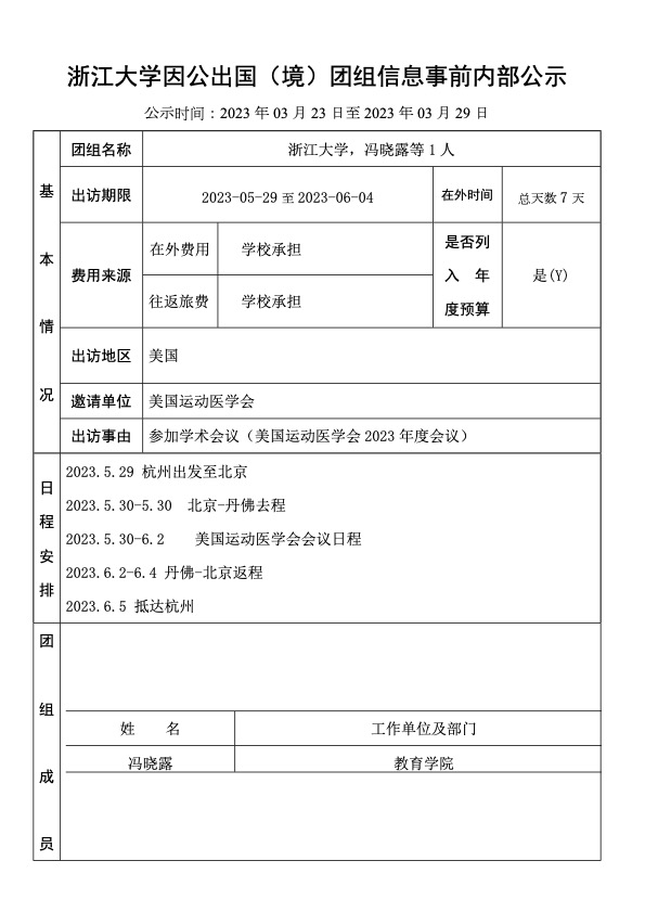浙江大学因公出国(境)团组信息事前内部公示 (3月)