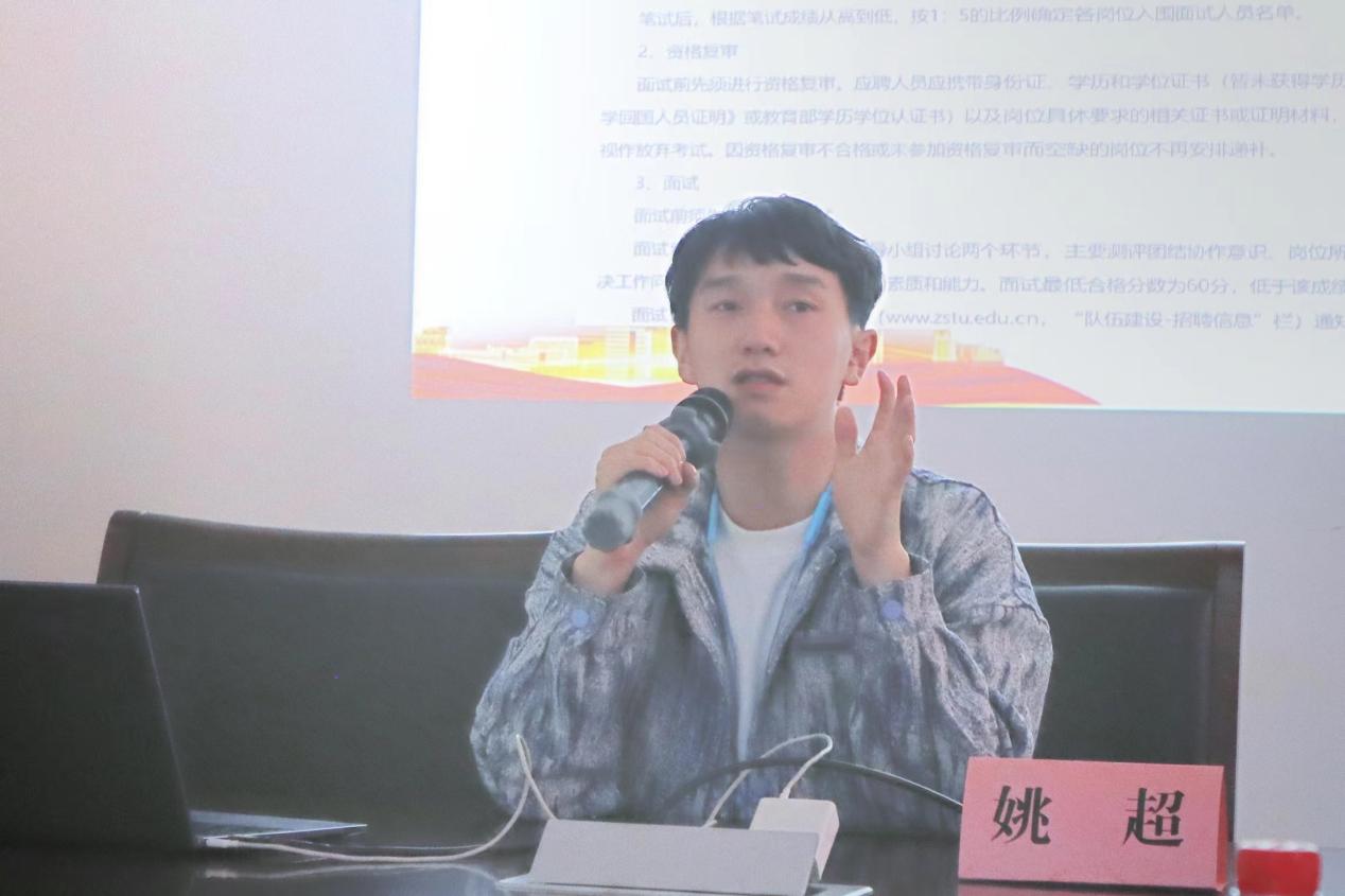 杜润凡老师从个人情况、备考经验、工作内容、工作感悟四个方面进行分享。她结合参加的三个地区的辅导员面试经历,分享了自己的笔试和面试经验。最后,杜润凡老师细细讲解了团线工作、就业工作、奖助工作和突发事件处理,提出要提升自身的细心、耐心和意志力,把握“亦师亦友”的辅导员定位。