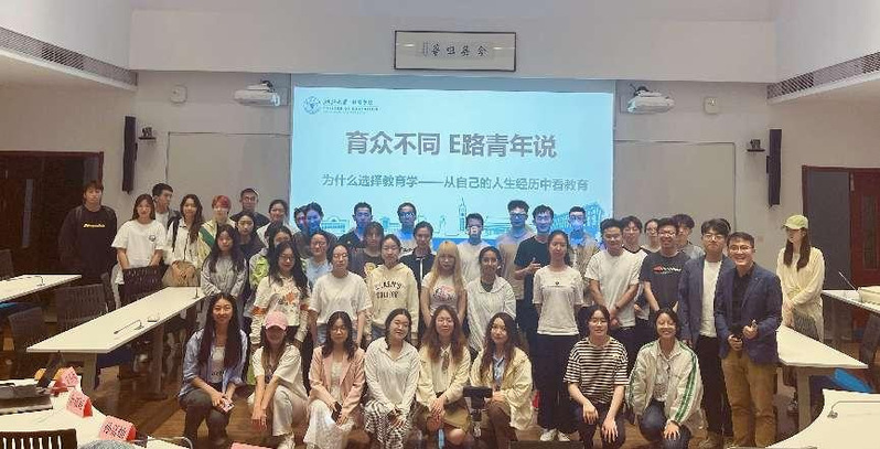 2023年5月5日晚,第一期教育学院学生于庸常中见锋芒的“育众不同,E路青年说”活动:“性之所近,力之所及——为什么选择教育学,从自己的人生经历中看教育”在研究生院107正式启动。本次活动由洪子婧同学主持,邀请了四位分享嘉宾:教育学院兼职辅导员,鲁嘉颖学姐;比较教育学博士生,陈浊学长;比较教育学硕士研究生,孙嘉灿学姐;教育技术学专业研究生,楚肖燕学姐,以及特邀嘉宾教育学院团委副书记吴春霆老师,一起共同见证了这场不一样的TED演讲。