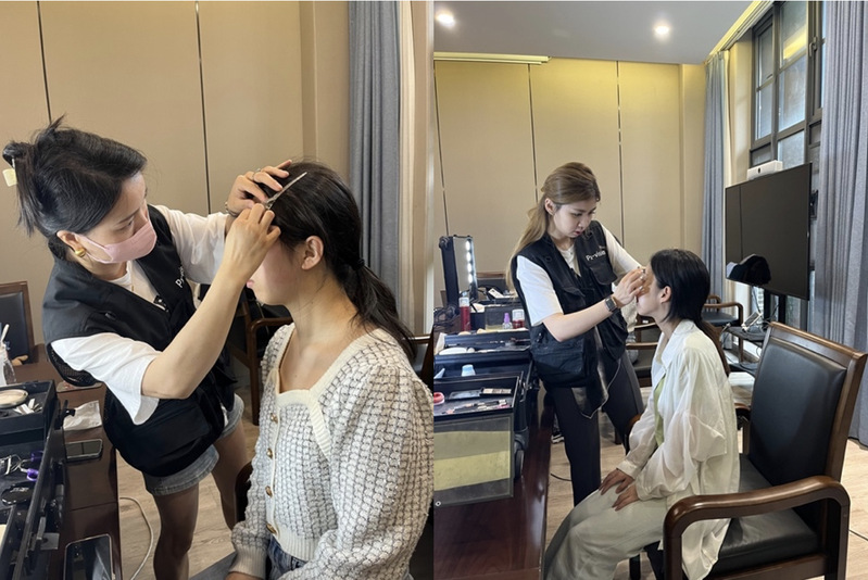 化妆师为同学们精心上妆中