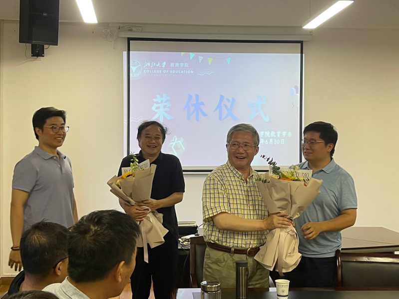 桃李育芬芳,岁月染芳华。2023年6月30日下午,教育学系教工党支部开展活动,为魏贤超和肖朗两位教授举行了荣休仪式。荣休仪式由李木洲老师主持。仪式伊始,来自相关学科的青年教师向两位荣休教授敬献鲜花,向他们表达诚挚敬意和祝福。