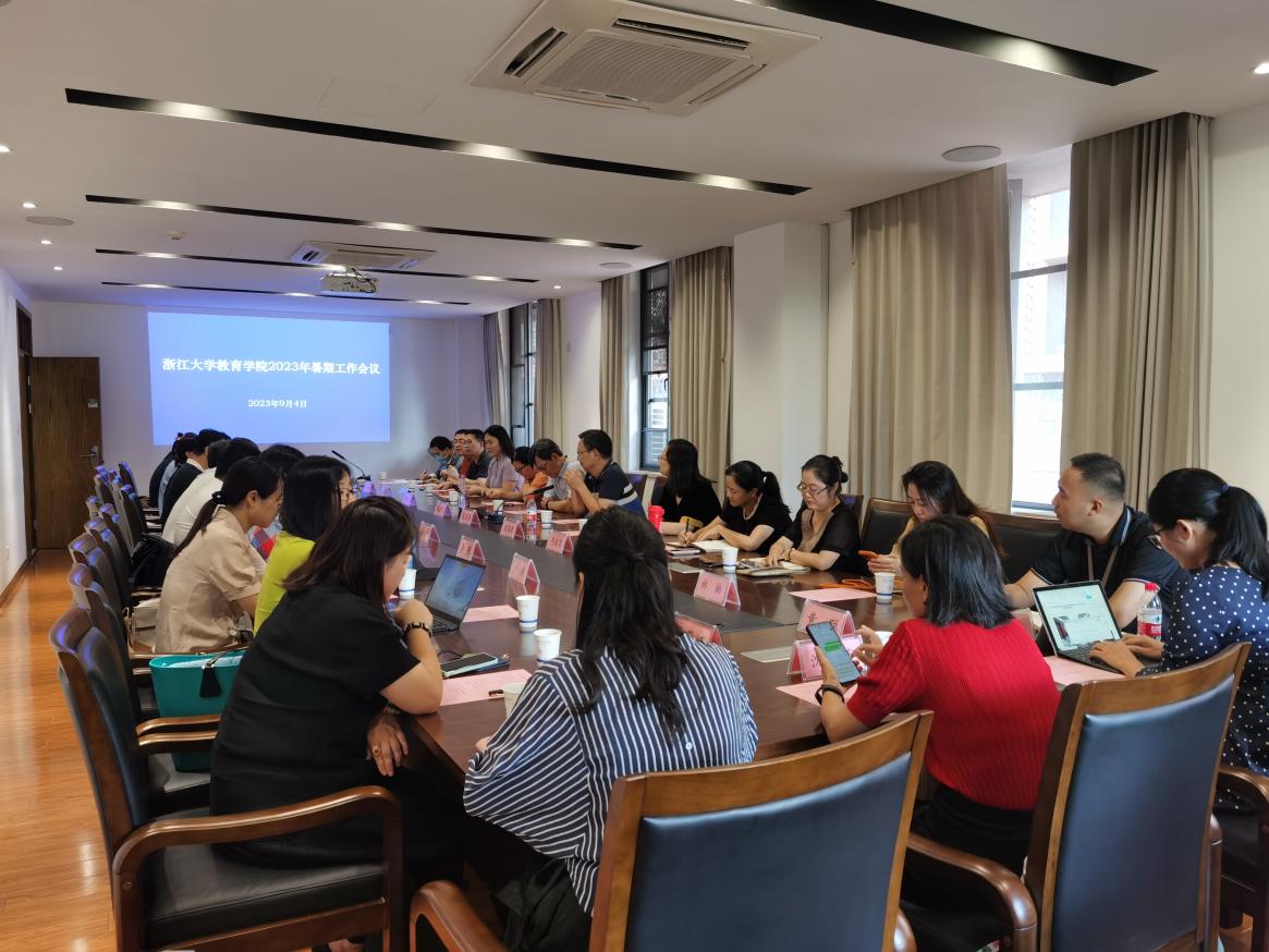 9月4日下午,浙江大学教育学院2023年暑期工作会议在222会议室召开。会议聚焦学习贯彻习近平总书记对浙江大学重要指示精神、贯彻落实学校第十五次党代会和学校暑期工作会议精神,明确新阶段战略使命任务,部署新学期学院重点工作,凝聚发展共识,汇聚发展合力,以学校新发展阶段使命愿景为指引,加快建设世界一流大学和优秀学科,奋力在中国特色世界一流大学建设中迈向前列。会议由党委书记吴巨慧主持。