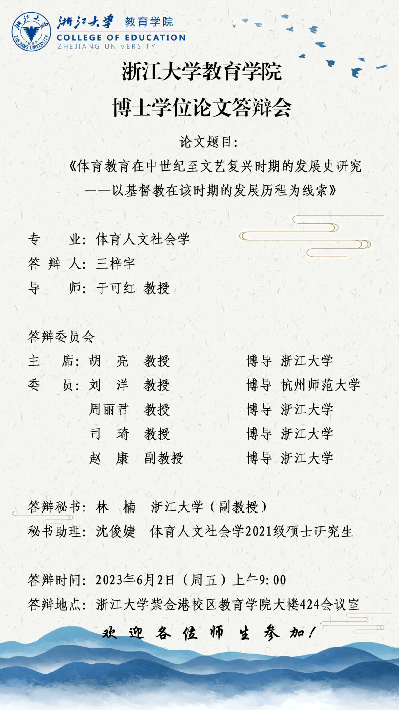【答辩】体育人文社会学专业博士学位论文答辩会