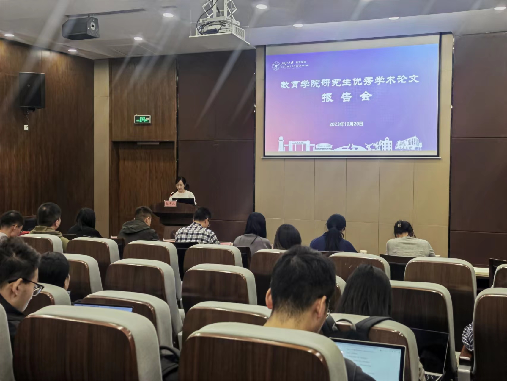 为增强我院研究生的创新意识,发扬求是精神,提高我院研究生学术水平,丰富学生的学术文化生活,2023年10月20日下午,教育学院2023年研究生优秀学术论文报告会教育学科场和体育学科场分别在教育学院大楼118报告厅和222会议室举行。叶映华教授、王莉华副教授,“百人计划”研究员耿凤基、李木洲、蒋佳老师,以及特聘副研究员段世飞老师应邀作为教育学科报告会现场评审专家,邱亚君教授、郭怡副教授作为体育学科报告会现场专家出席活动。来自各学科的硕博研究生共60余人参加了本次学术报告会。