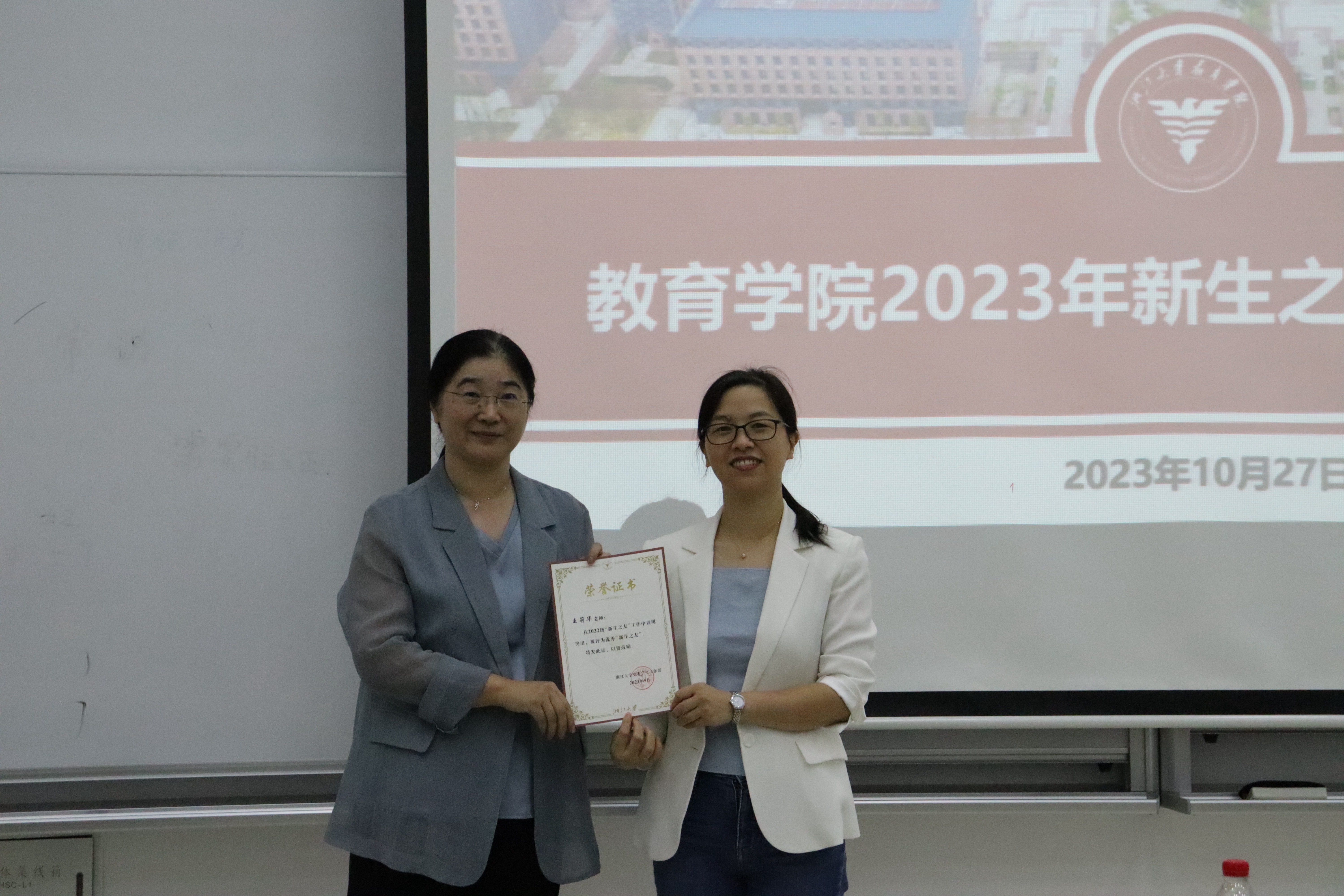 首先,崔倩老师为2022级浙江大学优秀新生之友获得者王莉华老师颁发证书。