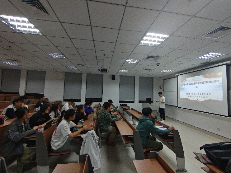 为深入学习贯彻习近平总书记考察浙江重要讲话精神,进一步放大格局视野、找准方位坐标,坚定扛起勇当先行者、谱写新篇章的使命担当,2023年11月3日,体育学系学生第二党支部全体成员,于研究生楼302教室开展以“勇当先行者,谱写新篇章”为主题的专题党课学习。本次党课由支部书记邹昱老师讲授,支部全体党员及入党积极分子共同参加。