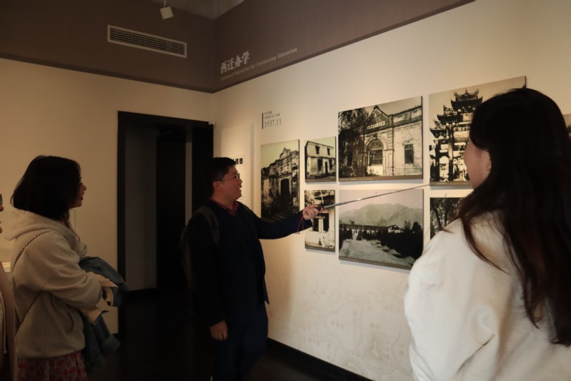 首先,全体党员来到竺可桢旧居。竺可桢校长旧居原为孙家大院。旧址范围内包含门屋、正屋、北侧附房和一座三合院。旧居内存门屋、正屋融合西洋风格,三合院和附房为传统砖木结构建筑,是抗战时期浙大西迁“流亡办学”的重要历史见证。党员同志们依次参观“国有成均”“国难岁月”“择址迁校”“初迁建德”“四库全书”“办学建德”“投身抗日”“迁离建德”“东方剑桥”“群英荟萃”“迈向一流”等专题介绍,深刻了解浙大西迁历史,感受到浙大师生们西迁时所面临的万般苦难。西迁路上,浙大师生所体现出的心怀祖国、无私奉献的精神至今仍鼓舞着我们后人勇往直前,争创一流。