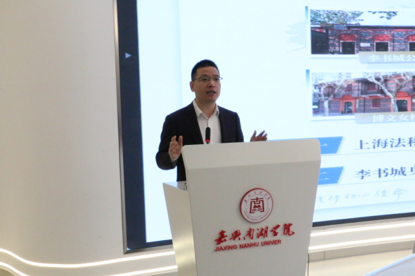师生党员一行首先来到嘉兴南湖学院。在嘉兴南湖学院贾文胜校长的陪同下,大家集体参观了该校红船精神育人馆,了解红船精神的诞生和发展史,学习理解首创、奋斗、奉献的红船精神,感受伟大建党精神。在南湖学院广场,大家了解了嘉兴南湖学院的建校历史及发展历程。当天,贾文胜校长向培训团作了题为“弘扬红船精神,践行初心使命”的专题报告,详细介绍了中共一大这段历史并深刻解读了开天辟地、敢为人先的首创精神,坚定理想、百折不挠的奋斗精神,立党为公、忠诚为民的奉献精神为内涵的红船精神,生动精彩而深入的报告使师生受益匪浅。