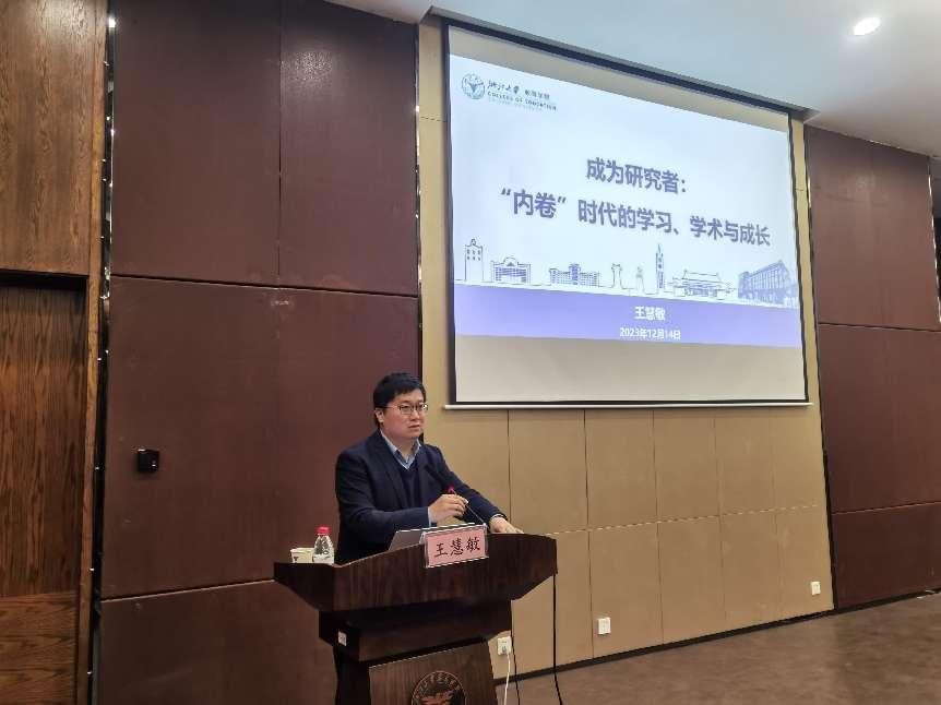 为了激发学生的科研兴趣,2023年12月14日晚上7点,学院举办了由王慧敏老师主讲的“成为研究者——内卷下的学习、学术与成长”科研主题讲座。本次讲座由浙江大学教育学院“研”路潜行——“未来学者”启蒙计划sqtp项目组组织,学院辅导员吴春霆老师和学院本科生参加本次讲座。