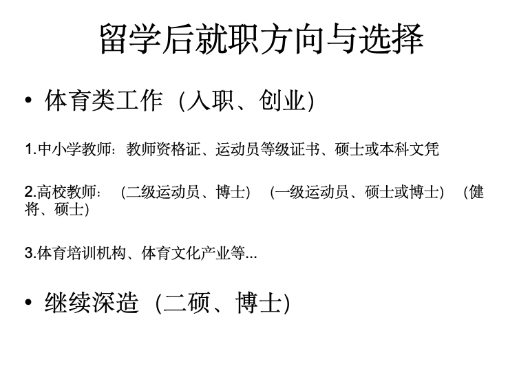 最后,林卓非学长从留学准备期、在读期、毕业期、留学后就职方向与选择等方面进行分享。他结合自身经历着重分享了在英国切斯特大学留学期间,除了完成基础课程学习,还需逐步掌握课程演讲、论文与案例分析等技能,不断从多个维度提升自己的综合实力。此外,在留学后就职方向与选择上,他建议体育类专业的同学们应充分发挥自身专项优势,可以选择体育类工作(入职、创业)亦或是继续深造(二硕、博士),厚积薄发,行稳致远。