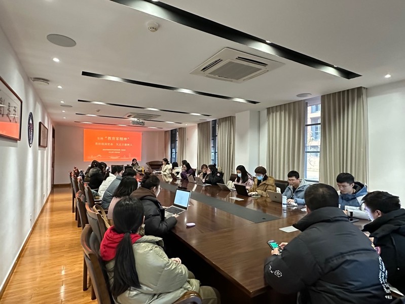 2023年12月20日,教育学科研究生第一党支部“弘扬‘教育家精神’”主题党日活动在教育学院222室召开。活动围绕“勇担强国使命,矢志立德树人”这一主旨展开,包括微党课环节和“成长与对话”环节,分别由4名支委讲述主题微党课,3名国家公派回国党员分享联培感受及经验。党支部30余名党员共同参与,活动由支部书记苏洁主持。