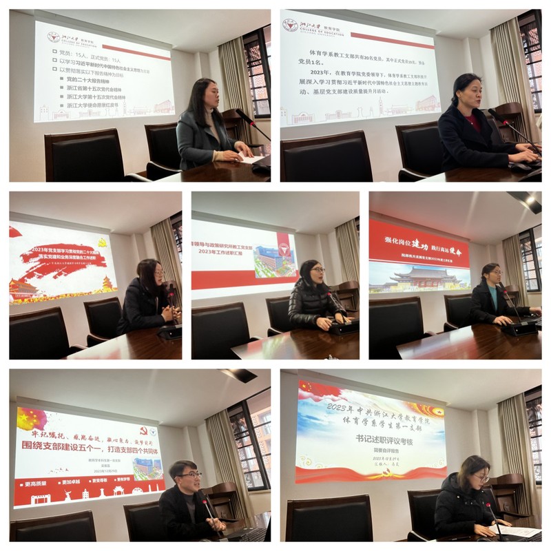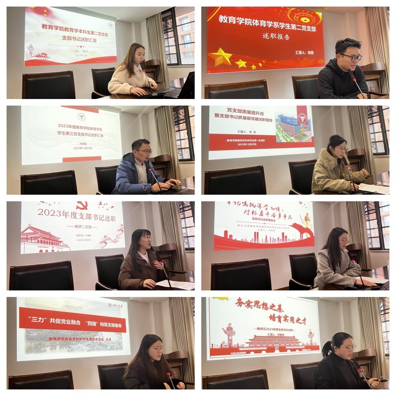 为增强党组织的政治功能和组织功能,深化党建与业务互融互促,助推高质量党建引领高质量发展,教育学院党委于2023年12月29日组织召开2023年党支部书记抓基层党建述职评议会。各师生党支部书记围绕主题教育主线、党建与业务互融互促主题、质量提升主责等进行述职汇报。学院党委委员、专兼职组织员、师生党支部书记及支部委员代表、学生党建兼职辅导员等20余人参会。