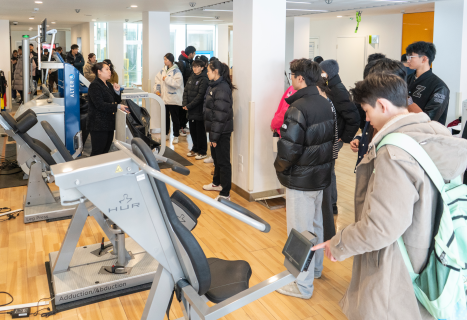 2024年1月2日,由郑芳教授带队,50余名体育学系师生赴杭州彩虹鱼康复护理院进行实地调研。彩虹鱼康复是杭州市政府为打造“健康杭州”重点引进的龙头项目,也是按国际质量标准运营管理的国内康复护理行业的一面旗帜。彩虹鱼集医、教、研于一体,拥有杭州彩虹鱼康复护理院和彩虹鱼康复护理学院,专业从事康复和医疗护理服务,包括大病康复、功能康复、运动肌骨康复、儿童康复、女性康复以及中医康复、健康管理。工作人员带领同学们参观了杭州彩虹鱼康复护理院的仪器设施,了解了彩虹鱼康复护理院全方位、全生命周期以及一站式的康复医疗和护理理念,感受康复细节对生活质量的提升。