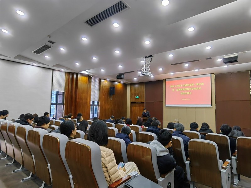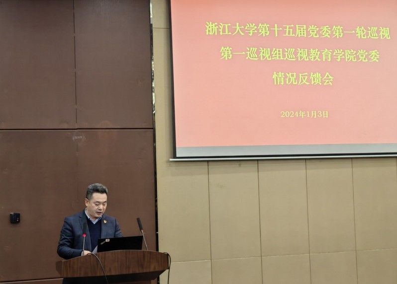2024年1月3日下午,浙江大学第十五届党委第一轮巡视第一巡视组巡视教育学院党委情况反馈会在紫金港校区教育学院报告厅召开。副校长何莲珍、校纪委副书记叶晓萍、第一巡视组组长李金林及全体成员,教育学院党政班子成员、纪委委员、系所党政负责人、科室负责人、支部书记以及师生代表等参会。会议由教育学院院长、党委副书记阚阅主持。