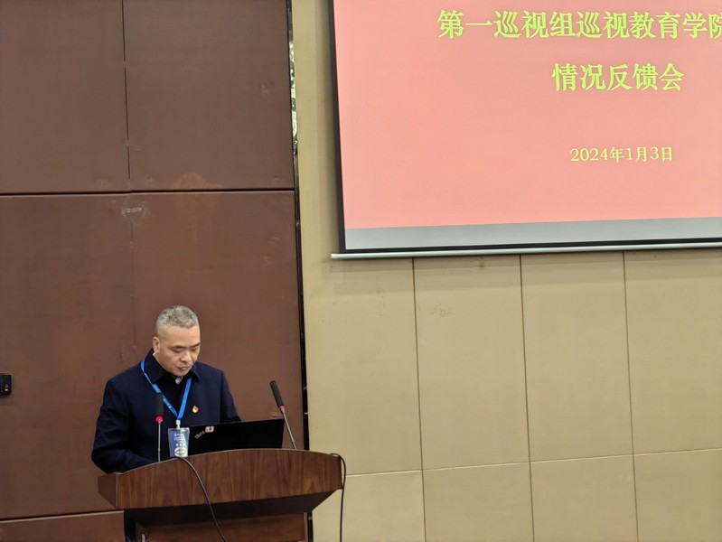 第一巡视组组长李金林反馈了此次巡视工作的基本过程和总体评价,并对巡视中发现的问题提出了相应的整改意见。李金林组长肯定了教育学院的工作实绩,但同时提出学院在学思践悟习近平新时代中国特色社会主义思想,落实党的路线方针政策和党中央重大决策部署,落实全面从严治党战略部署,落实新时代党的组织路线,落实巡视整改等方面存在的不足。巡视组提出了三方面的整改意见。第一,勇于担当作为,以高远使命为引领,加快建设中国特色世界一流优秀学科;第二,精于匠心筑梦,以弘扬教育家精神为目标,聚焦育人成效激发人才动能;第三,善于传道受业,以立德树人为使命,着力培养担当民族复兴大任的时代新人。要求学院党委即刻启动整改工作,坚持立行立改、全面整改、加强自我督导,坚决完成抓好巡视整改的政治任务,确保整改取得实效。