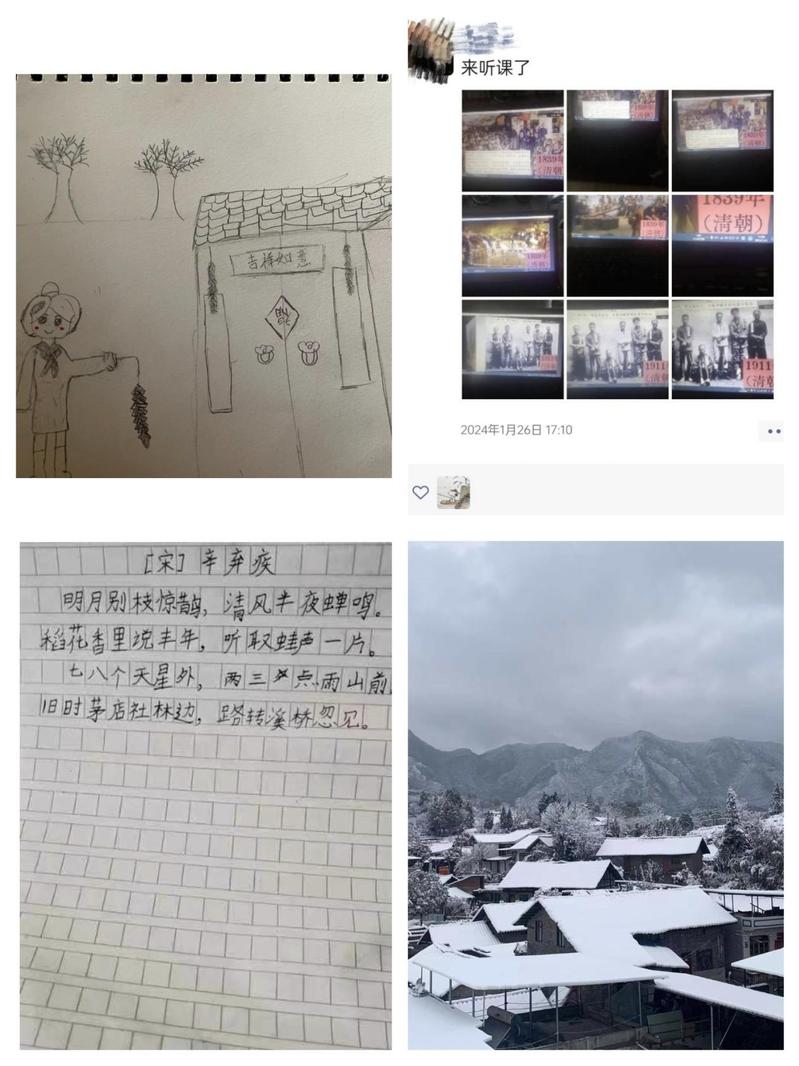 在活动过程中,除了固定的连线环节,志愿者与同学们也会以图片、文字等形式在线上互动,比如分享自己家乡的图片、自己学习的所获所感以及自己过年的日常等,双方以线上的形式建立起了沟通的桥梁。