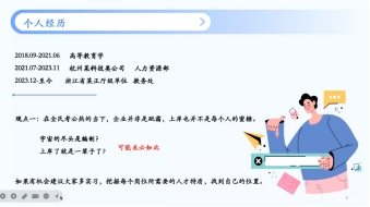通过单位自主招考入职浙江科技学院的彭馨谊学姐围绕“学历和专项优势最大化”的观点,建议同学们通过实习、人格测试、与前辈和导师的交流沟通,总结并找到自己的职业兴趣点。同时,她从“平衡工作与毕业”的角度出发,为同学们提出了关键时间点需完成的学习任务,以供参考。另外,彭馨谊学姐针对面试分享了几点有益经验:1)围绕学校经历,针对性的修改简历;2)提前准备面试问题的回答;3)面试要从第一眼见到考官就保持状态;4)提前了解面试官的研究方向,面试单位的特点和优势进行切入点的延伸和探讨;5)多试试线下面试,在实战中间获得经验。最后,馨谊学姐指出,工作好坏并非评价的唯一标准,同学们需要自我肯定,学会化解消极情绪,遇到困难要以结果为导向进行分析与解决。