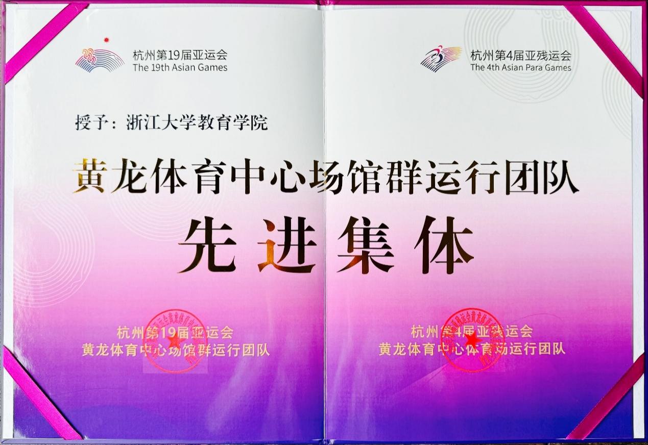 近日,我院荣获由杭州第19届亚运会、第4届亚残运会黄龙体育中心场馆群运行团队授予的先进集体称号。