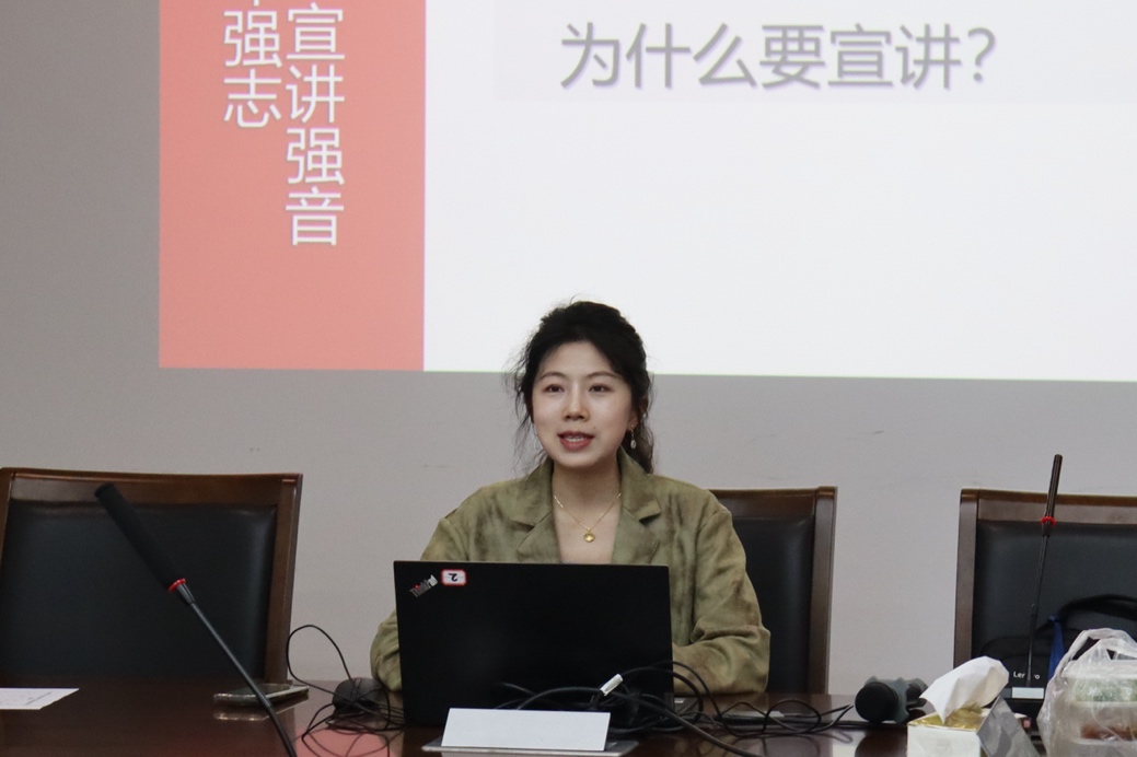 钟翼老师就理论宣讲“时、度、效”三维提升法进行分享。她首先围绕“什么是宣讲、为什么要宣讲”两个问题,带领大家追溯理论宣讲的历史,了解理论宣讲的意义。在谈到如何准备和讲好微党课时,她抛出三个问题引导大家进行思考。首先是“为什么要讲这个?”,针对微党课主题,她强调要因时而动,紧跟理论热点。其次是“为什么是我来讲?”,她提醒大家要找准自己的“人设”,建立自身与故事之间的联结。最后是“怎么才能讲到别人心里?”,她介绍了宣讲的停连、重音、语气、节奏等八大要点,并结合自身参赛和评审经历,分享了目光、手势、PPT制作等一些宣讲时的实用技巧。随后,钟翼老师就同学们关于备课、宣讲等方面的提问进行解答交流。