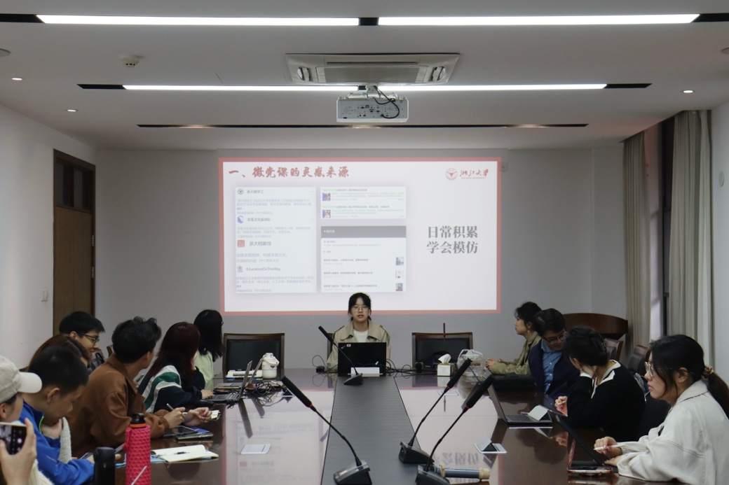 朱熠璠结合自身准备微党课的经历,介绍了备课的灵感来源。她以微党课具体内容为例,分享了不断重组内容、突出“教育家精神”核心的修改过程,强调反复打磨微党课内容的重要性,并介绍了PPT制作的实用技巧。