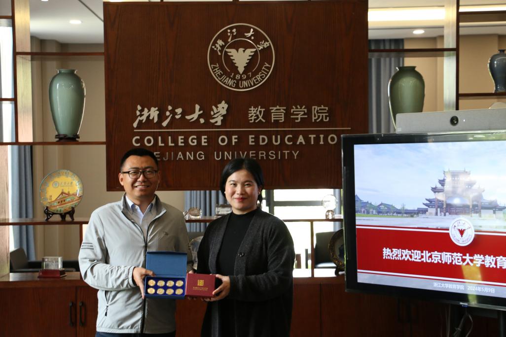 随后,与会人员以思政工作与辅导员队伍建设为主题展开了热烈交流讨论,互相分享宝贵经验,交换工作心得,收获良多。会议最后,北京师范大学教育学部学生工作办公室主任邱化民代表北京师范大学教育学部向学院赠送了纪念品,两校交流圆满结束。