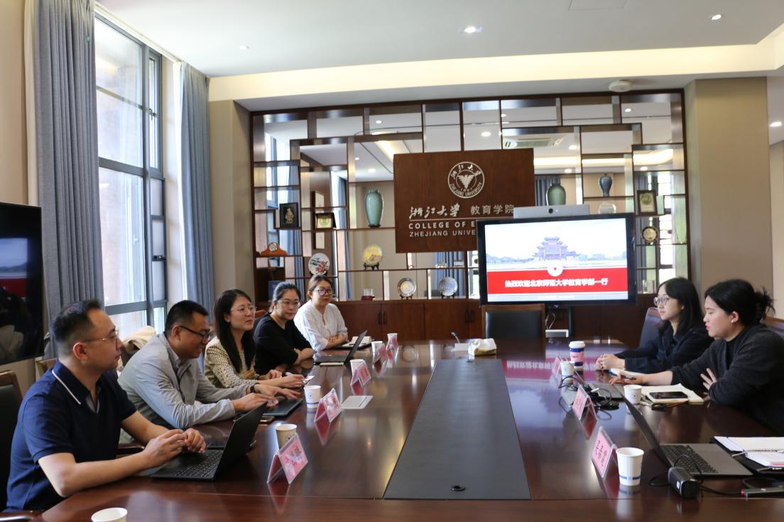 5月9日上午,北京师范大学教育学部学生工作办公室主任邱化民,学生工作办公室副主任张斐,高等教育研究院讲师庄腾腾,国际与比较教育研究院讲师荆晓丽,学生工作办公室辅导员郑鑫、王晶一行来院座谈交流。浙江大学教育学院团委书记张静波,团委副书记吴春霆,团委老师章褚昀等参加会议。会议由教育学院团委书记张静波主持。