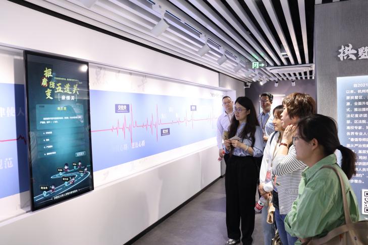在参观区,党员们观看了廉洁微电影《人无再少年》,参与拒腐防变知识问答挑战,通过沉浸式、体验式的学习方式,党员们更深刻地认识到严明党的纪律规矩的重要性。