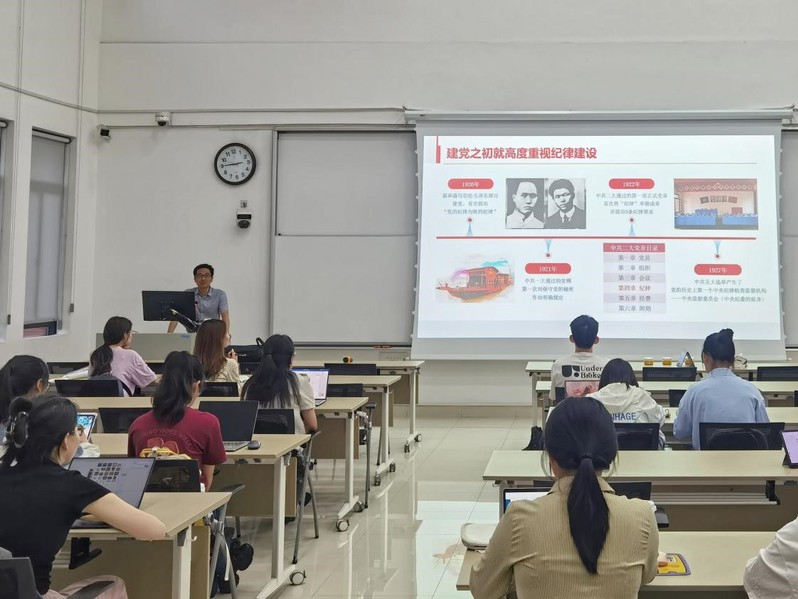 为深入学习贯彻习近平总书记关于党的自我革命的重要思想,扎实开展本科生党支部党纪学习教育,引导学生党员学纪、知纪、明纪、守纪,2024年5月24日,教育学本科生第一党支部、教育学本科生第二党支部开展党纪学习教育联合主题党日活动。学院副院长、党委委员孙元涛老师应邀作纪律党课,两支部党员还开展了党纪知识竞赛。