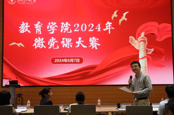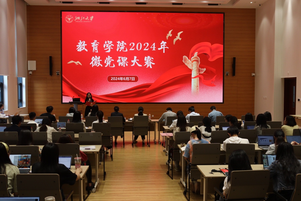 为深入学习贯彻习近平总书记关于教育的重要论述以及对浙江大学的系列重要指示精神,深入推进党纪学习教育,引导广大师生党员牢记初心使命,弘扬践行“中国特有的教育家精神”,不断提升政治素质和专业水平,为教育强国建设贡献智慧和力量,6月7日下午,浙江大学教育学院2024年微党课大赛在紫金港校区研究生教育综合楼101报告厅举行。