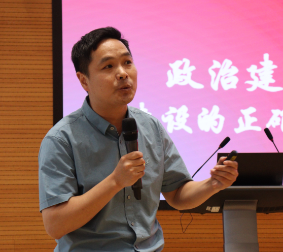 教育学院军事理论教研室教师、院部机关直属党支部纪检委员、浙江省思政微课大赛特等奖获得者程春以《加强纪律性,革命无不胜》为题,带来了一堂生动的示范性主题微党课。他从新时代加强国防和军队建设的着力点引入,回顾我军政治建军的历史,生动地阐释了纪律建设的重要性。