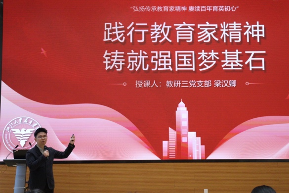 12位选手基于专业特色和自身经历,分别围绕“严守党纪党规,锻造青春‘正’能量”“牢记嘱托担使命,挺膺担当育新篇”“弘扬传承教育家精神,赓续百年初心使命”三个主题进行微党课展示。他们有的在讲述西迁故事中追寻教育学者的足迹,有的从小物件出发探寻体育人精神的传承,有的在“大先生”的小故事中感悟教育家精神的内涵,有的用生动的案例解读党纪的铮铮铁律……他们的宣讲或慷慨激昂振奋精神,或春风化雨浸润人心,以独特的视角、亲身的经历和鲜活的语言,为现场师生带来了精彩纷呈的微党课,全方位展现了教院学子锐意进取、积极向上的蓬勃朝气,以及牢记嘱托、传承教育家精神的坚定信念与不渝追求。