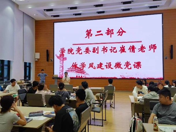 当天,学院党委副书记崔倩老师为支部师生作学风建设微党课。崔老师深情谈到,在凤凰花开季、旭日初升时,又一届教院学子学成毕业,即将踏上人生的新旅途。希望大家在未来的职业生涯中,要持续追求个人内心充实与自我价值的实现。学校和教院永远是毕业学子的家,希望大家能常回家看看,保持与学校的密切交流和联系。崔老师强调了“诚信立身”的学风建设要求,勉励大家做到“诚信做人、诚信做事、诚信考试、诚信科研”。她指出,人无信不立,无论是学生还是老师,都需要正衣冠、讲信用,不能陷入蝇头小利而无法自拔。崔老师还从党纪警示教育案例入手,讲述了诚信在个人成长和长期职业发展中的重要作用。