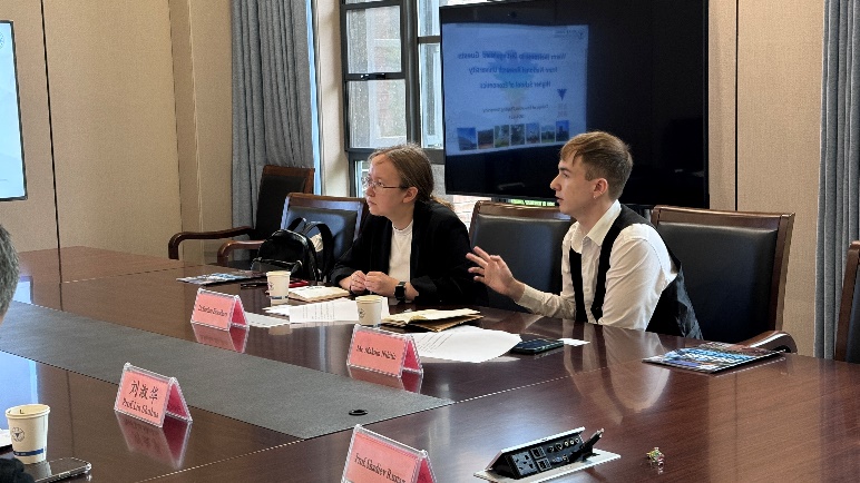 在随后的讨论环节中,双方围绕多个议题展开了交流。首先,双方探讨了联合研究项目的可能性,并希望通过合作进一步提升学术研究成果。其次,双方讨论了续办联合暑期学校的计划。此外,双方还探讨了联合举办研究生研讨会和实习项目的可行性,并就共同参与和组织国际会议进行了交流。最后,双方讨论了联合培养学生及其他相关学术交流项目的计划等。