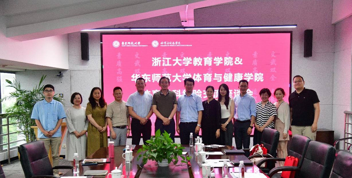 6月24日赴华东师范大学体育与健康学院开展调研。华东师范大学体育与健康学院院长季浏、党委副书记兼副院长李浩、副院长陈海涛、副院长刘微娜、院长助理兼学院办公室主任孙洁丽参加座谈会,会议由华东师范大学体育与健康学院院长季浏主持。会上,双方就招生培养、学科建设、运动队建设等方面展开了热烈的交流与讨论。会后,参观了青少年健康评价与运动干预教育部重点实验室:体育与健康教学行为科学研究中心。
