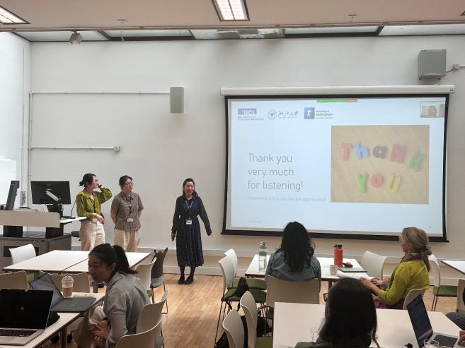 UCL-ZJU-Nottingham研究团队成员高洁博士、朱颜博士和郭玢博士做主题报告