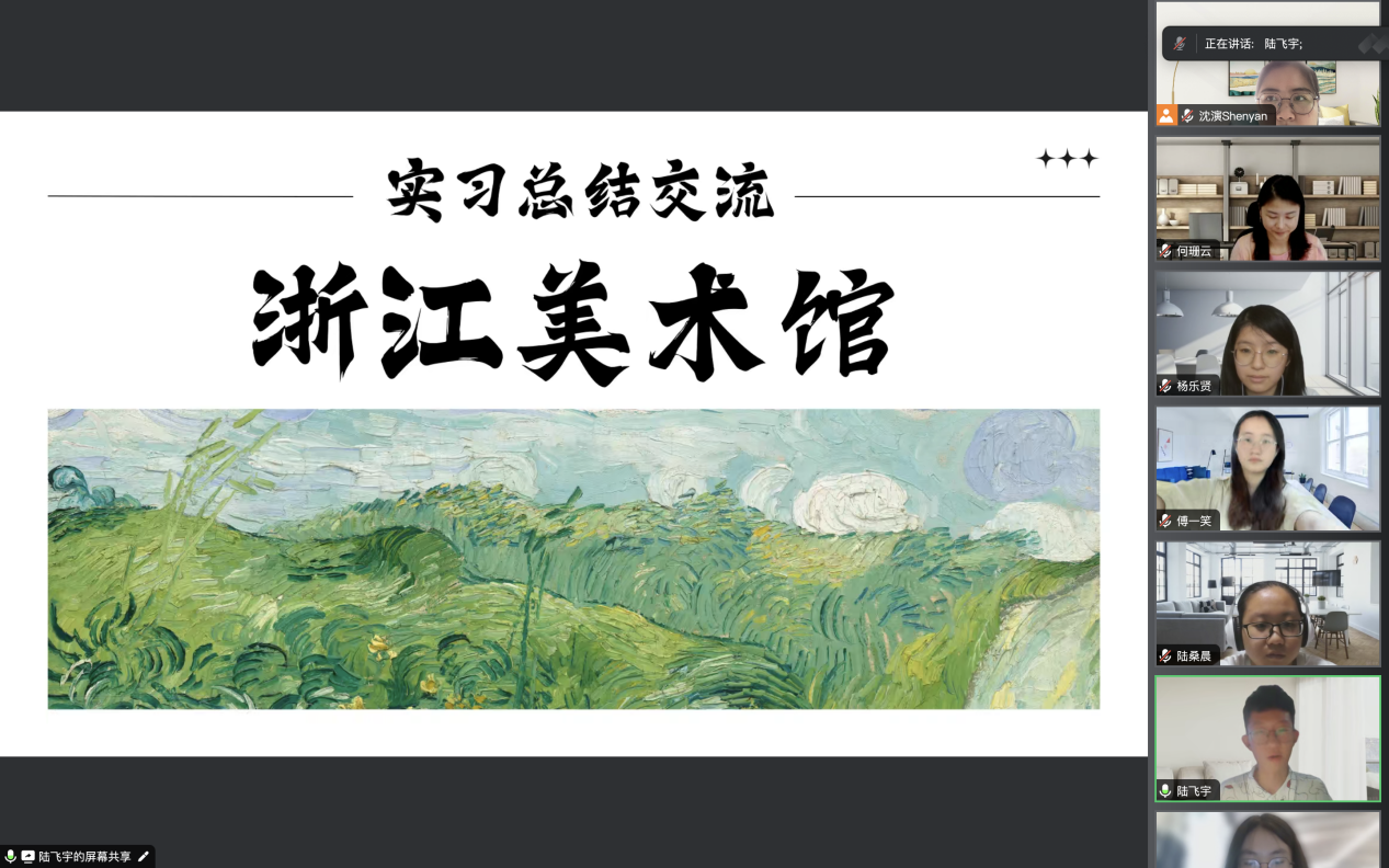 在学生正式跟岗实习前,指导教师何珊云老师首先于7月1日上午在教育学院222会议室召开见习动员会,详细介绍了暑期见习的整体安排与实践要求等。随后分别在7月3日上午和7月4日上午安排全体同学参加两家博物馆的整体介绍,包括基本馆情、创新做法与成功教育经验等。并进行了前期国内外博物馆教育案例分析,深化同学们对不同类型博物馆教育的了解,做好实习的心理和专业的准备。其中,在浙江美术馆的线下走访中,同学们在钱骋馆长的带领下参观了美术馆的各大展厅和兼具视觉和文化震撼的艺术藏品,领略了馆内浓厚的美学气息,并在美术馆馆史馆中深入了解了浙江美术馆的开馆起源与发展历史,深刻感受到浙江美术馆自习近平总书记亲自选址、开工,建成以来,始终坚持“重在当代、兼顾历史,立足浙江、面向世界”的立馆方向。在澳门科学馆的线上启动会上,同学们在线聆听了澳门科学馆黄逸恒董事的分享与介绍,通过VR视频等形式体验实地游览的全过程,了解了澳门科学馆以技术赋能教育的创新工作和馆型设计、标志建筑、展厅布局、教育服务、互动体验等方面的独具匠心,对澳门科学馆的组织架构、日常运作模式、实习安排等有了全面、清晰的理解。