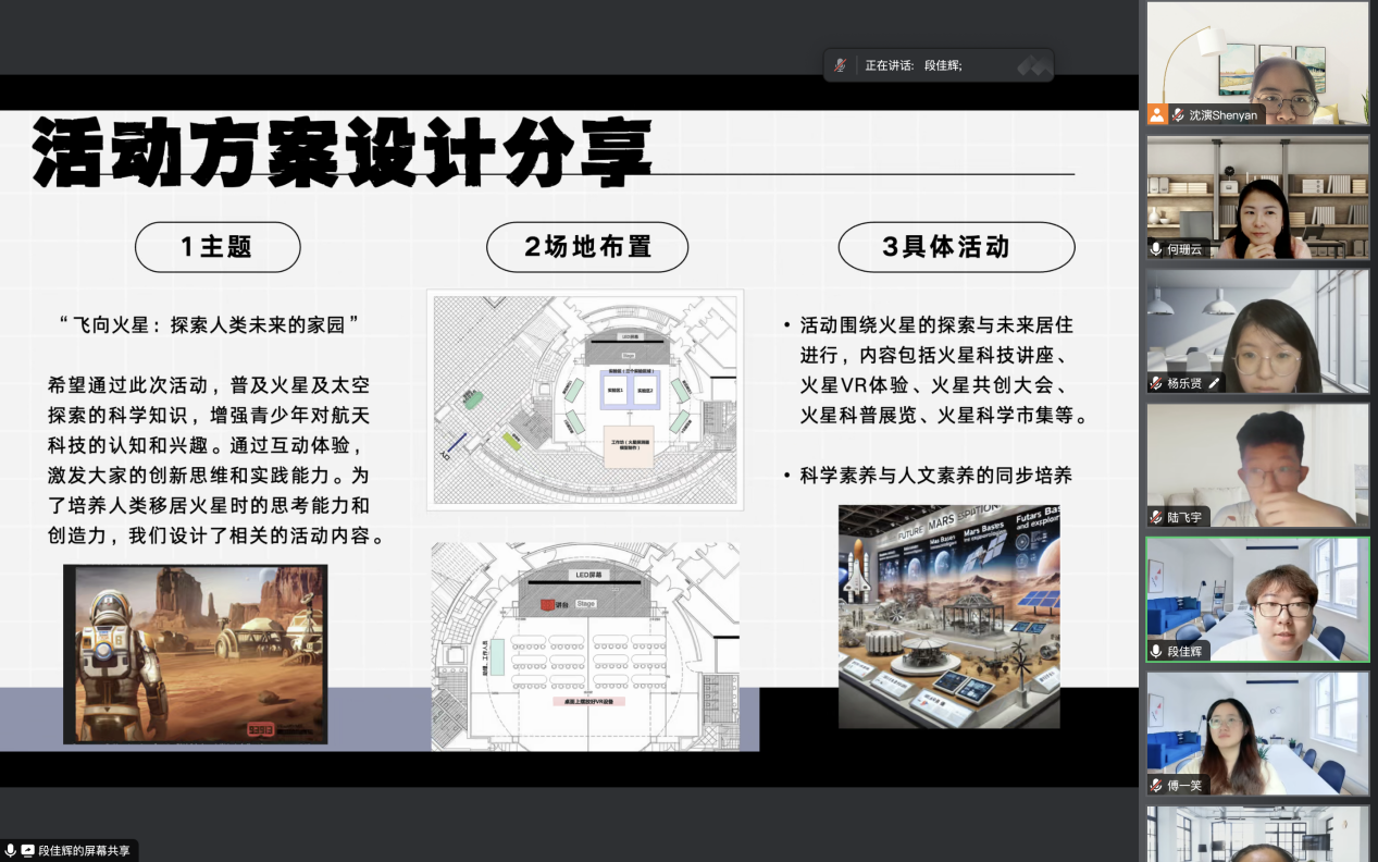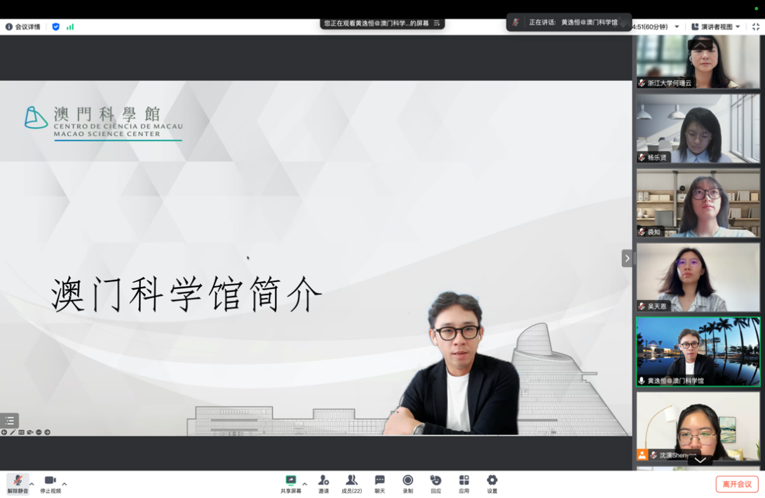 在实习结束之际,指导教师与全体同学进行了在线的经验总结与收获分享,会上同学们以工作小组为单位,积极分享见习过程中的经历见闻、收获感触与反思建议。有较多同学对真实工作场域下如何有效沟通、如何合作交流、如何表达观点、如何自主学习、如何把控工作进度等方面展开了充分的反思,认为本次见习切切实实培养了多维技能、积累了丰富经验、锻炼了综合素养。有同学对教育项目的“落地性”这一点产生了深刻的体会,“活动策划是一个渐进的过程,需要切实考虑其可行性,比如成本、时间、所需材料等,而不仅仅是一个停留在纸上的方案”,“需要考虑面向对象的特征,比如通过一些有趣的图案吸引小朋友的注意,但同时也要关注它的教育性”,因此同学们也建议未来可以有机会前往澳门科学院,实地体验项目的布置、实施与交互;有同学认识到活动策划的复杂与严谨,“成功的展览不仅依赖于创意,更需要严谨的管理和执行,需要了解如何在实际操作中关注细节“;有同学在设计研学方案的过程中,通过搜集线上资料、深入实地考察、采访相关人员,对博物馆教育的意义与价值有了深刻的感触,“亲身感受到了博物馆作为非正式教育场所的魅力:博物馆不仅是知识的宝库,是连接科学与公众的桥梁,更是教育的延伸,为孩子们提供了重要的实践学习平台”;还有同学在教育理论结合实际的过程中,认识到教育学与自然科学、博物馆学等学科的交叉融合,为其未来的学术探索提供了新的方向。