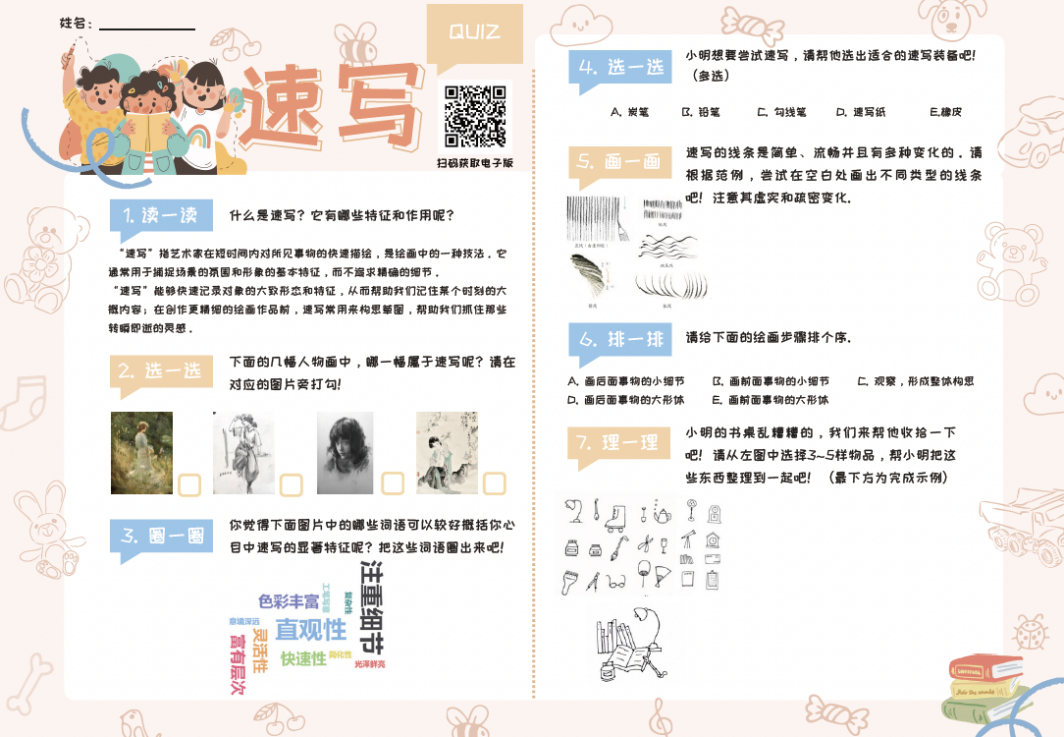 在随后的实习过程中,浙江美术馆实习小组的同学分别在研究策划部、展览部、典藏部和办公室四个部门开展工作,具体包括布展准备、展品典藏、活动策划等过程中的真实任务,如上报办展申请、制定画展预算规划、撰写藏品简介文案、信息图像采集、整理和校对材料等,在稳扎稳打地完成交办任务的同时也从教育学的视角不断深化思考。同时,同学们也发挥专业所长,结合美术馆公共教育设施“儿童美术天地”,以“趣味速写”为主题,为小学生设计趣味性测验,锻炼了走向现实需求的教育专业能力。在澳门科学馆线上实习的同学则分别在会展组、设计组和教育组开展工作,以科普教育为核心,以团队合作的形式,以反馈促进学习的方式,在带教老师与小组成员的讨论、修改、完善过程中出色完成会展方案策划、节日宣传海报设计、研学活动与教案编写、博物馆及其展区介绍文稿撰写、拍摄制作科普视频等工作,产出丰硕工作成果。